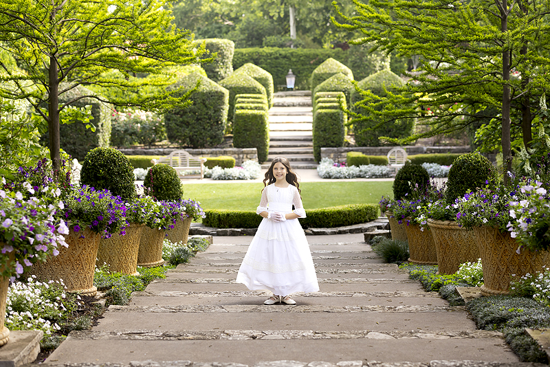 This session took place at one of my favorite spots—the Dallas Arboretum. The lush gardens and peaceful pathways provided the perfect backdrop for this sweet girl’s First Communion portraits. Dressed in a delicate white dress that flowed in the breeze and holding her cherished rosary, she looked every bit the radiant young lady her family knows and loves.