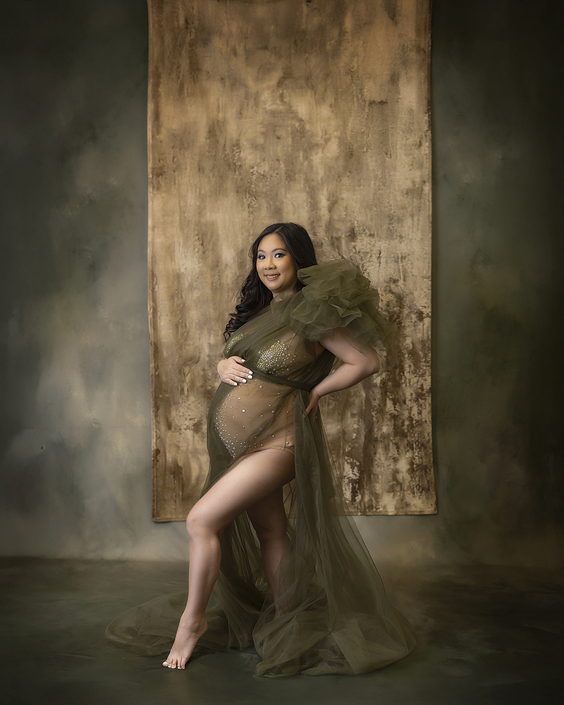 Pregnant woman wearing green gown
